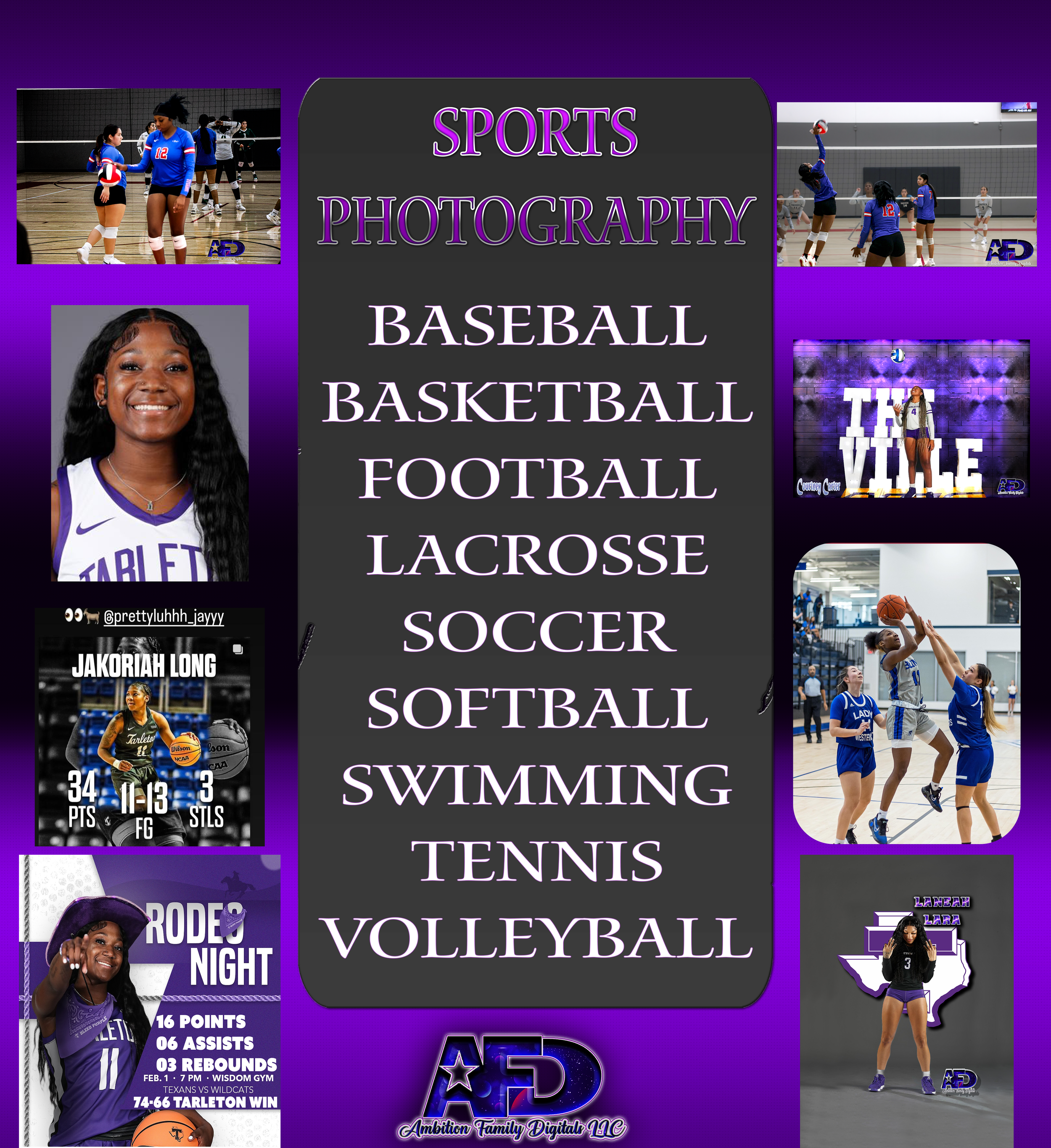 Whether you're a professional sports organization, a collegiate athletic department, or a passionate high school team, we are here to provide you with comprehensive visual and multimedia solutions that will elevate your brand and engage your audience. From dynamic action shots and captivating player profiles to live-streamed broadcasts and post-game highlights, our services are designed to showcase the true essence of your athletes and their incredible feats.